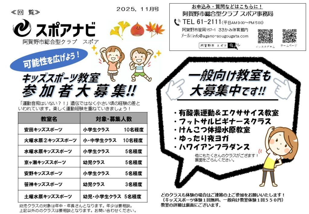 キッズスポーツ教室参加者大募集!!