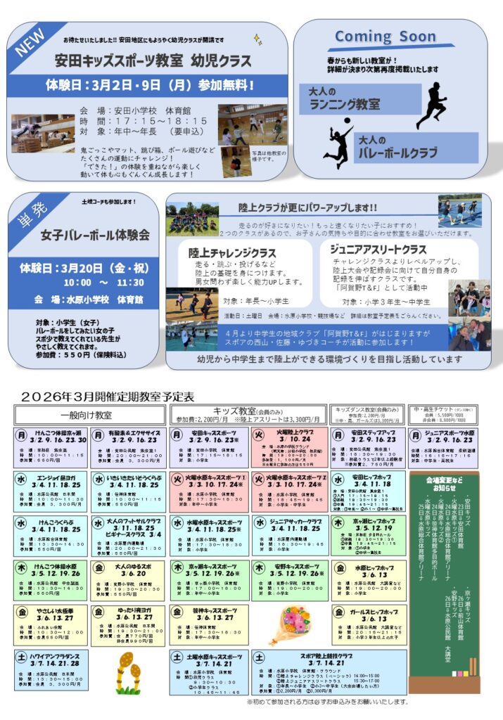 体験日 3月2日・9日(月) 参加無料